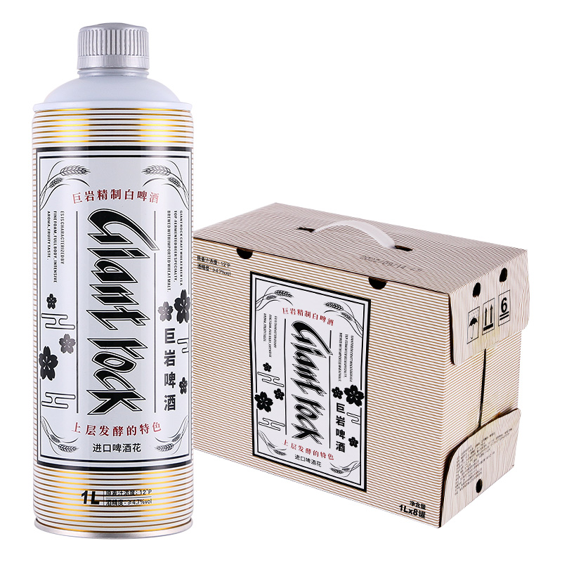 【买5送1】巨岩精制白啤酒1L*8瓶