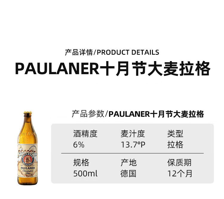 PAULANER十月节大麦拉格啤酒500ML*20瓶(贸易货)