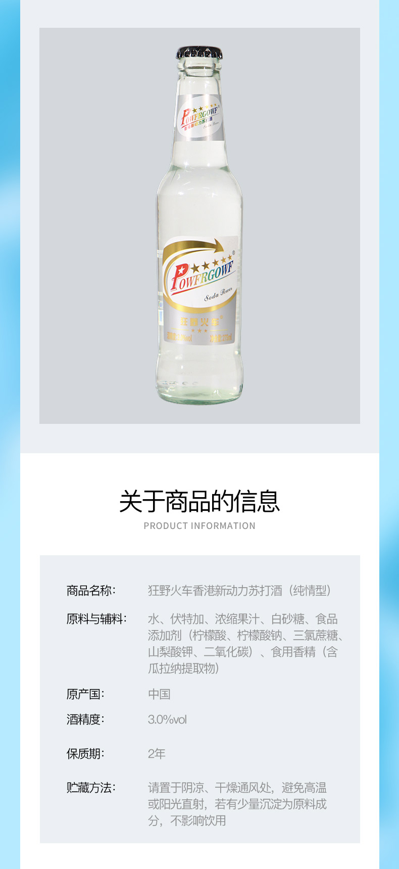 【买10送1】狂野火车香港新动力苏打酒(纯情型)275ml*24瓶