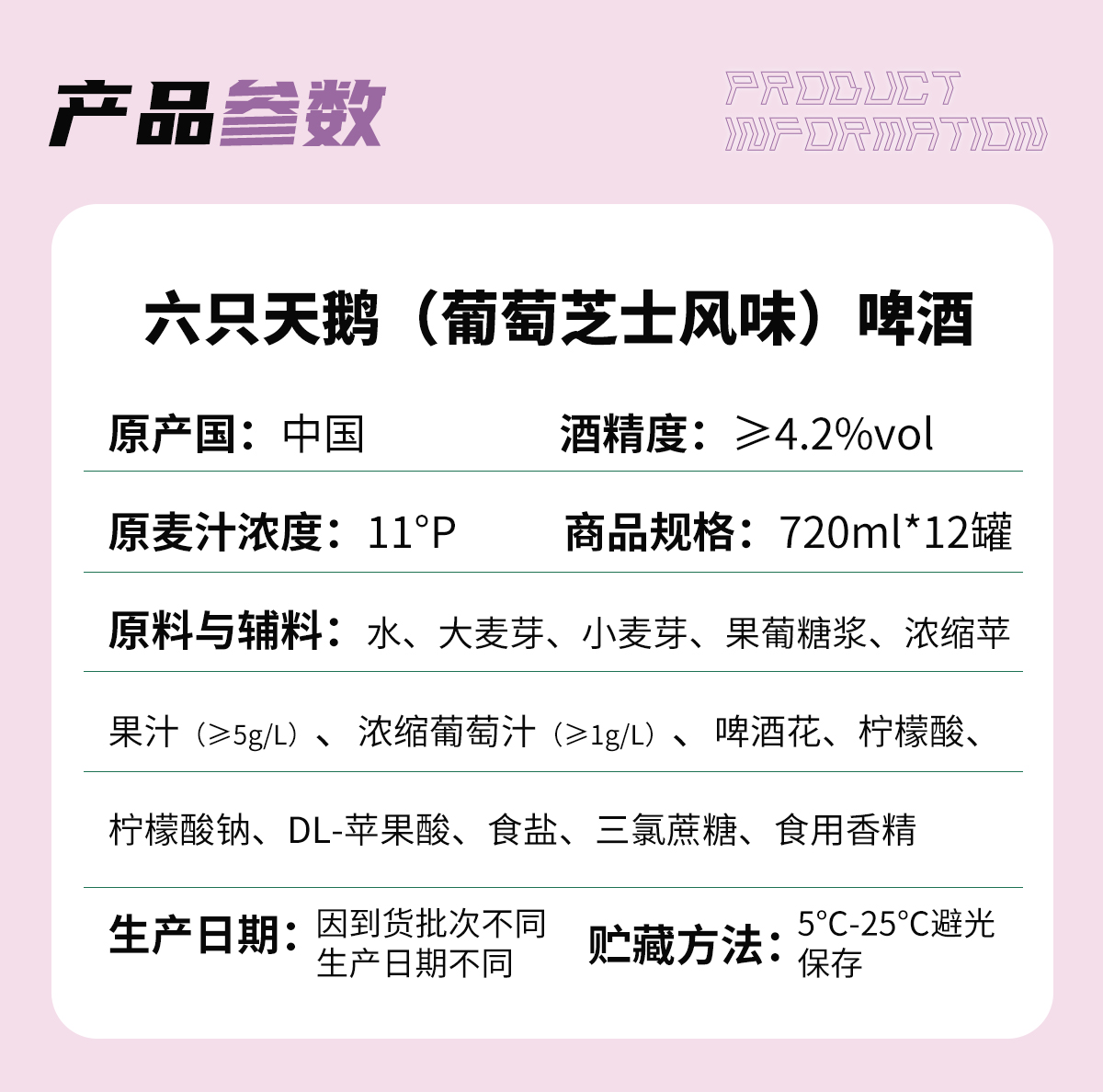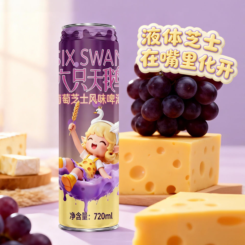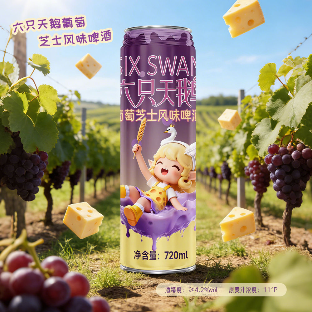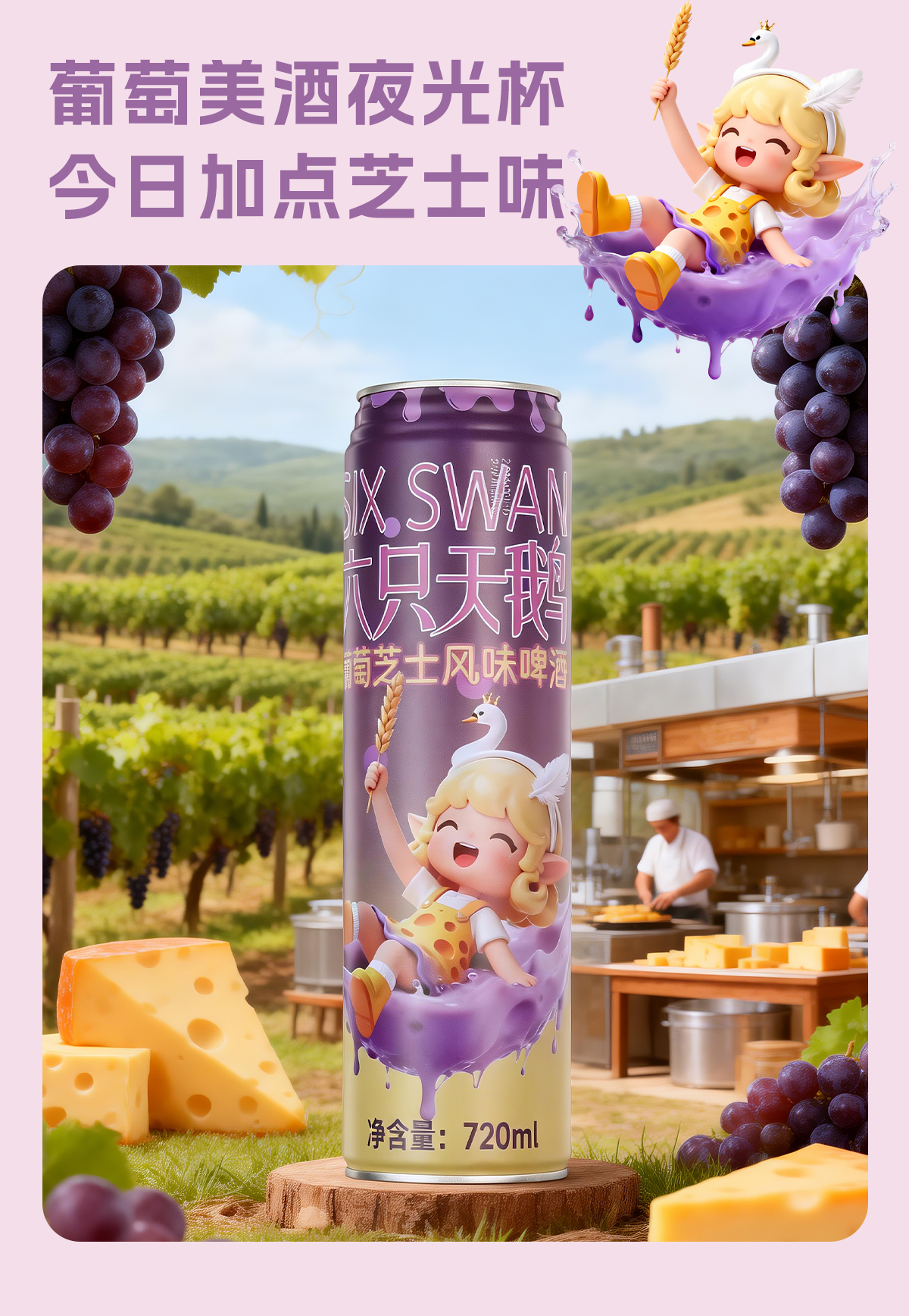六只天鹅葡萄芝士风味啤酒720ml*12瓶