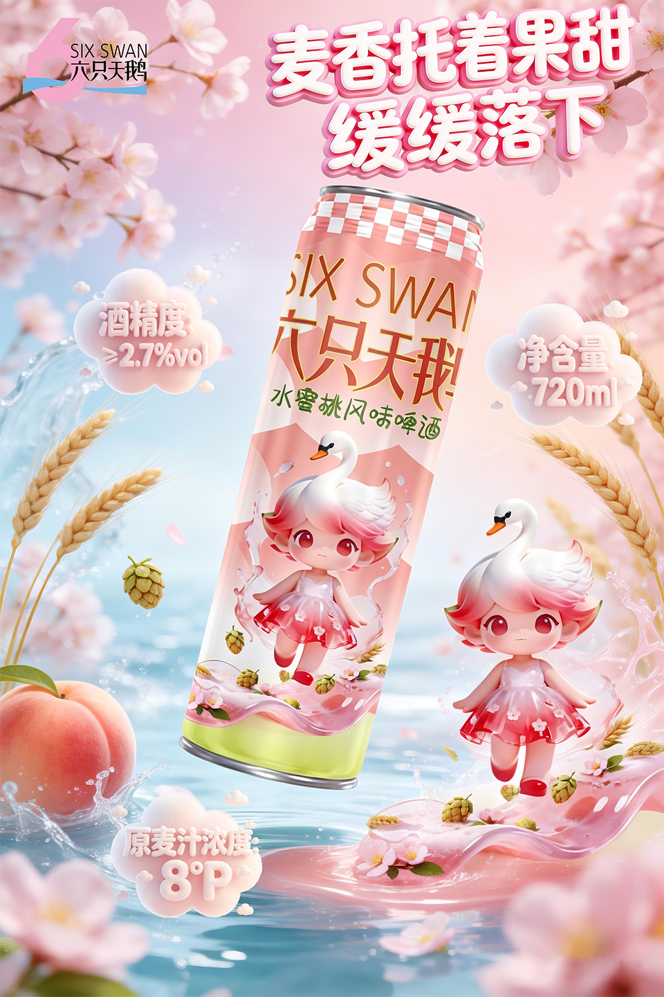 六只天鹅水蜜桃味啤酒720ml*12瓶