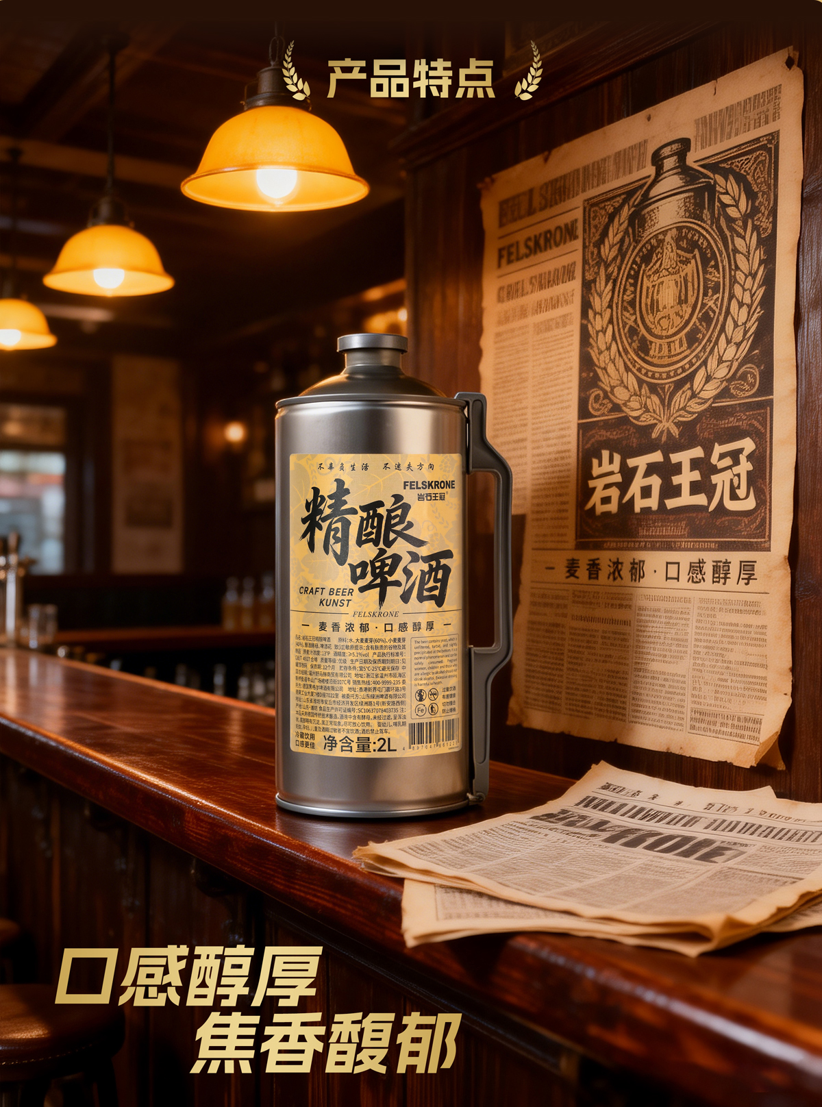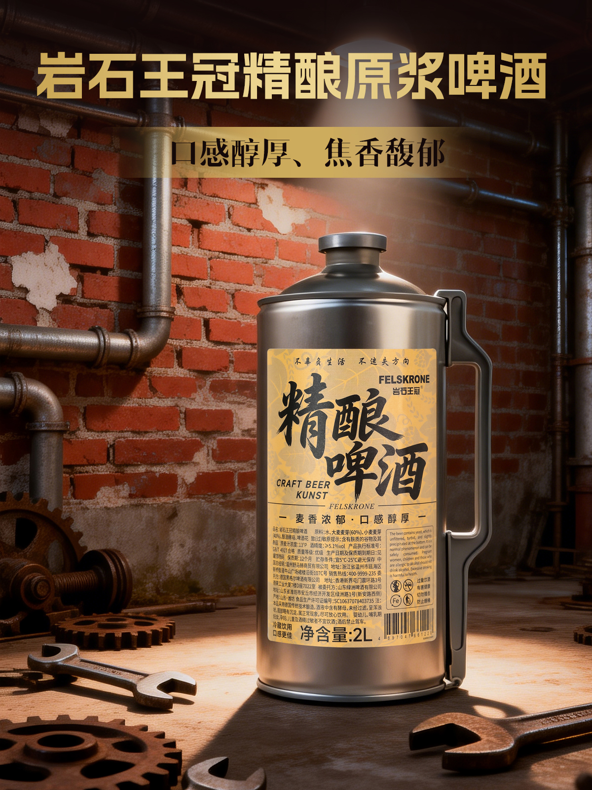 岩石王冠精酿原浆啤酒2L*6桶