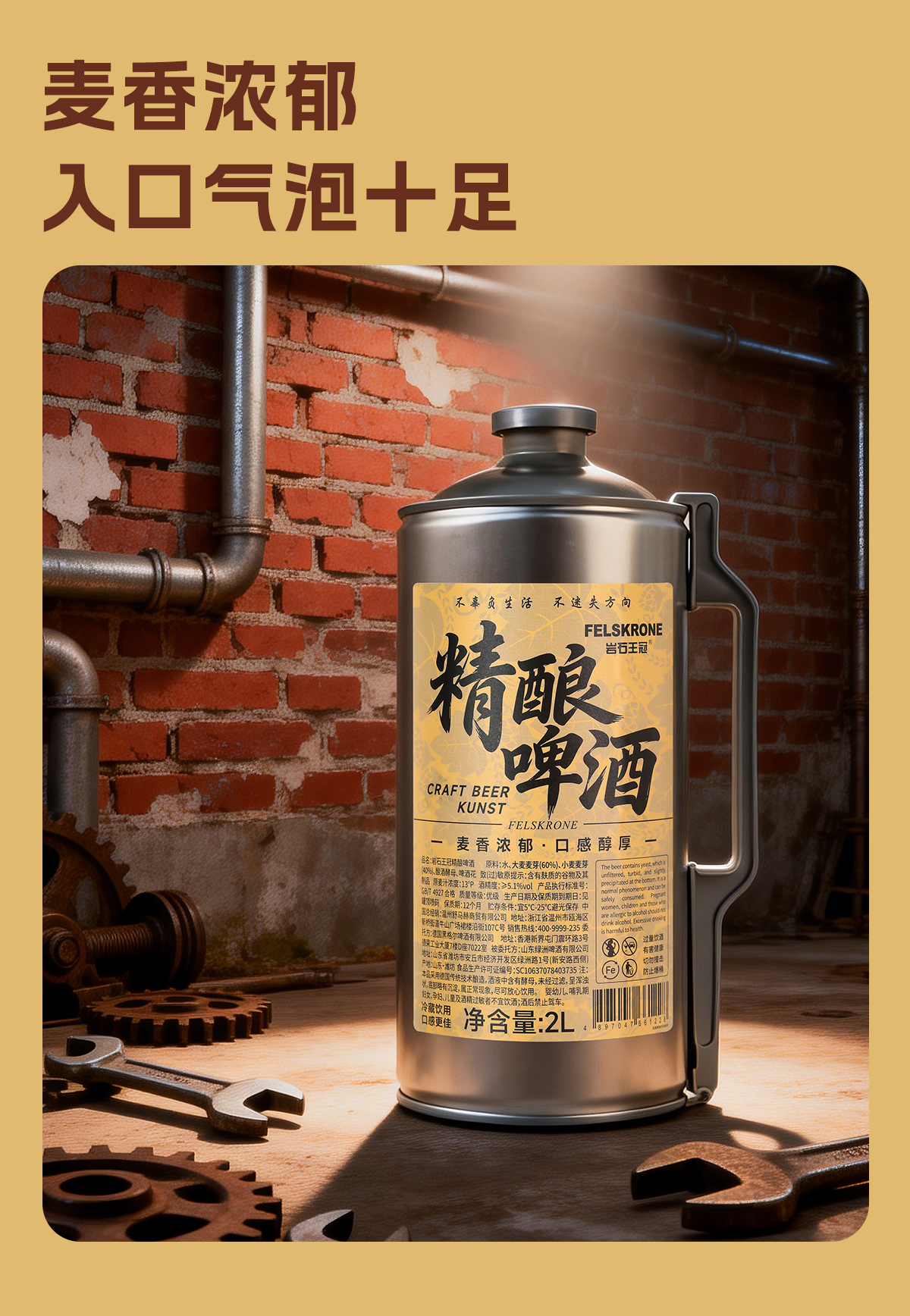 岩石王冠精酿原浆啤酒2L*6桶