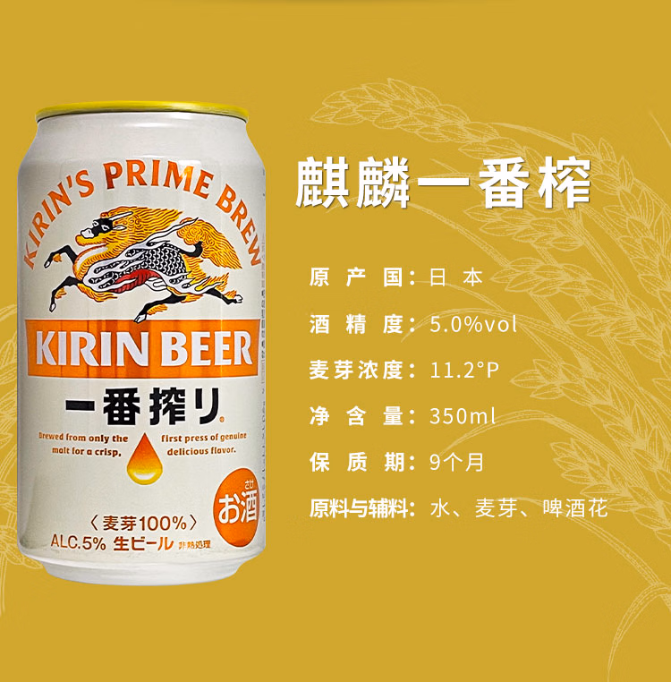 麒麟一番榨啤酒250ML*24罐(贸易)