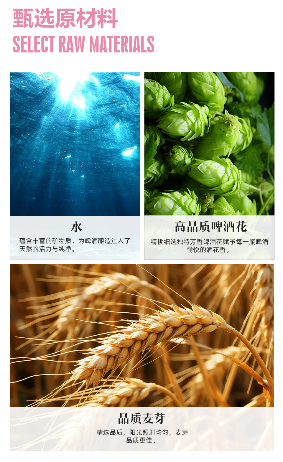 产地:山东青岛 原料与辅料:水、大麦芽、小麦芽、啤酒花 (麦芽投料比例100%其中小麦芽≥40%) 酒精度:≥3.8%vol 原麦汁浓度:10°P 保质期:6个月 贮藏方法:建议5℃-25℃运输和贮存