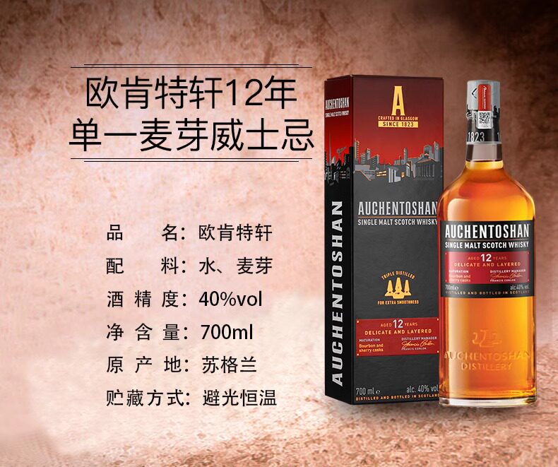 欧肯特轩12年单一麦苏格兰芽威士忌700ML*1瓶
